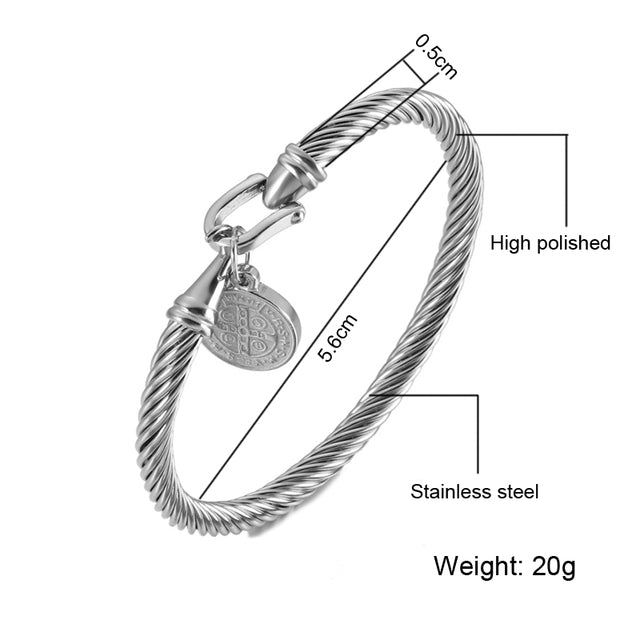 For those looking for beautiful, unique jewelry that signifies faith, look no further than our Saint Benedict Medal Charm Bracelets. Crafted with exquisite attention to detail, these bracelet bangles are a timeless accessory your customers will love. Made from 316L stainless steel and gold color plating, these Saint Benedict bangles are made to last without ever losing their original shine. With the classic ‘San benito’ design featuring a traditional cross detail, this stunning jewelry is sure to be treasured for years to come. Show off your faith in style with these gorgeous bracelets, perfect as gifts or just to add some pizzazz to any outfit.